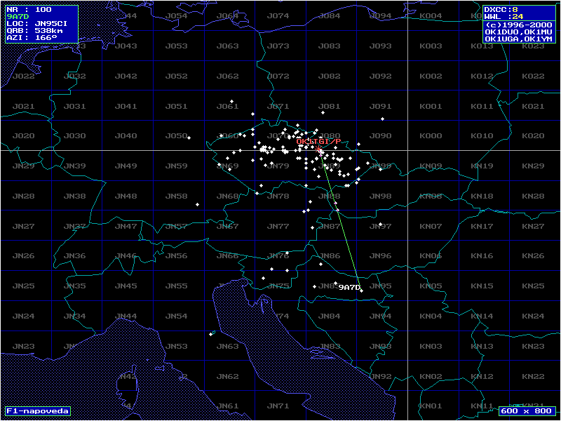 Ještě večer přepisuji deník ze sešitu do počítače (Locator OK1DUO). Tady je